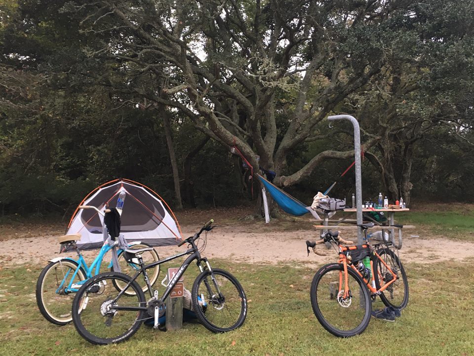 We loaded our bikes up on the car, drove to Virginia Beach and through Sandbridge, and parked our cars overnight at Little Island State Park. Then we loaded up all of our gear on the bikes, and rode in through Back Bay, past the False Cape visitor center, and on to campsite number 12. All together, the ride in ([Strava link here](https://www.strava.com/)) was about 9 miles and took our group a little over an hour.