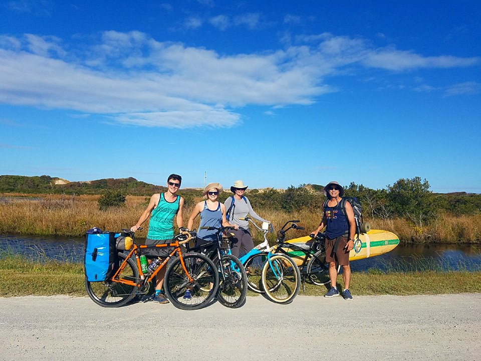 The next morning, we got up with the sunrise, made breakfast, and set out to explore the park. We were hoping to ride our bikes all the way to the North Carolina border, but the trail was a bit too loose and sandy for my 40mm tires to handle, so we headed to the beach instead. To get to the beach, you have to park your bikes at nearby bike racks and then take a short walk over some sand dunes.