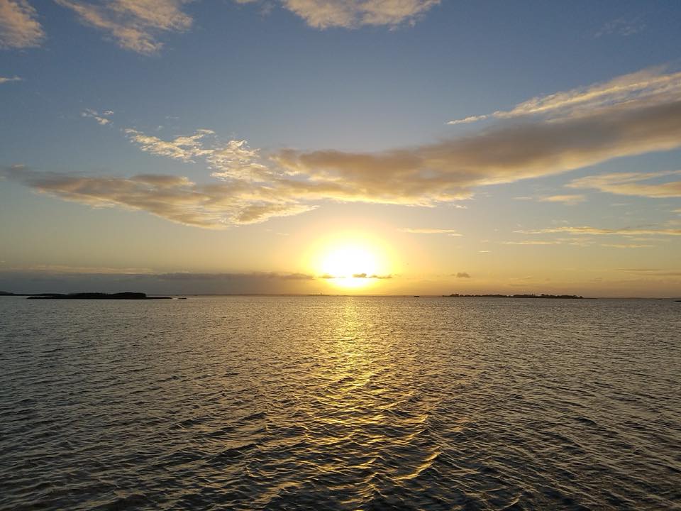 Once we reached the campsite and set down our stuff, we had just enough time to watch the sunset over the bay (there was a nice little kayak dock just a short walk from our campsite). After that, we retired to our campsite, cooked dinner over my homemade alcohol stove, and played card games until bed time.